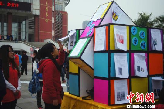 大學生正在參觀閩南師范大學消費維權漫畫展。 王欣 攝