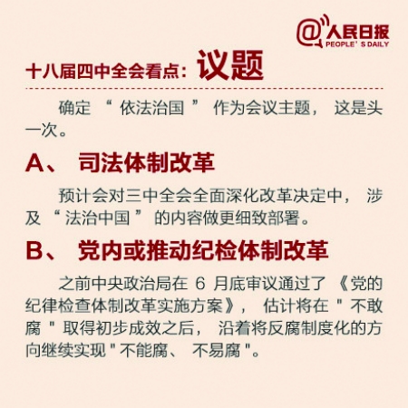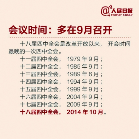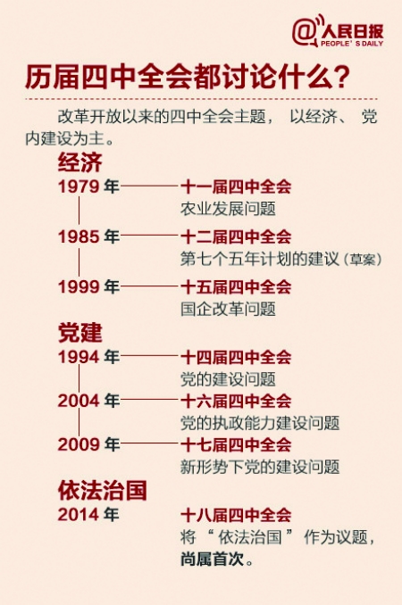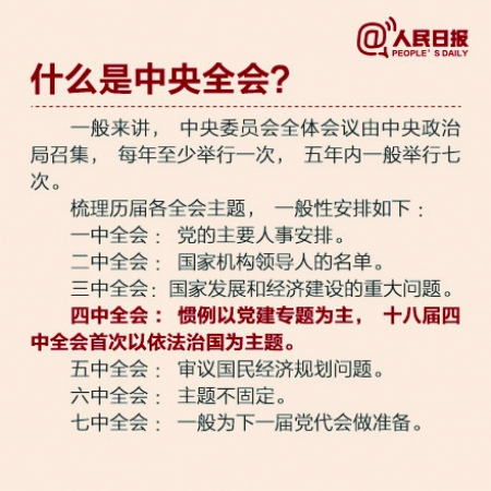20日,十八屆四中全會將在北京召開。現在問題來了:“四中全會”討論什么?依法治國首次成全會主題,傳遞什么政治信號?……能從全會中看出門道是大本事!9張圖,教你看懂四中全會,一起學習!