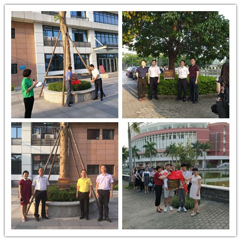首批校園景觀認(rèn)養(yǎng)認(rèn)捐樹木共有15棵,分別位于科技信息樓正門東西兩側(cè)的兩棵香樟樹,科技信息樓東南方的一棵重陽木和逸夫圖書館東側(cè)的12棵桂花樹。首批校園景觀認(rèn)養(yǎng)認(rèn)捐樹木分別由學(xué)校領(lǐng)導(dǎo)班子,黨(校)辦、黨委組織部、宣傳部、學(xué)工部、人事處、國資處、教務(wù)處、財(cái)務(wù)處、團(tuán)委等部門領(lǐng)導(dǎo)以及數(shù)統(tǒng)學(xué)院行政人員共同捐款認(rèn)養(yǎng)。吳彬鏹、李順興、鐘發(fā)亮、蔣一婷以及首批校園景觀樹木認(rèn)養(yǎng)認(rèn)捐單位為所認(rèn)養(yǎng)樹木揭牌。