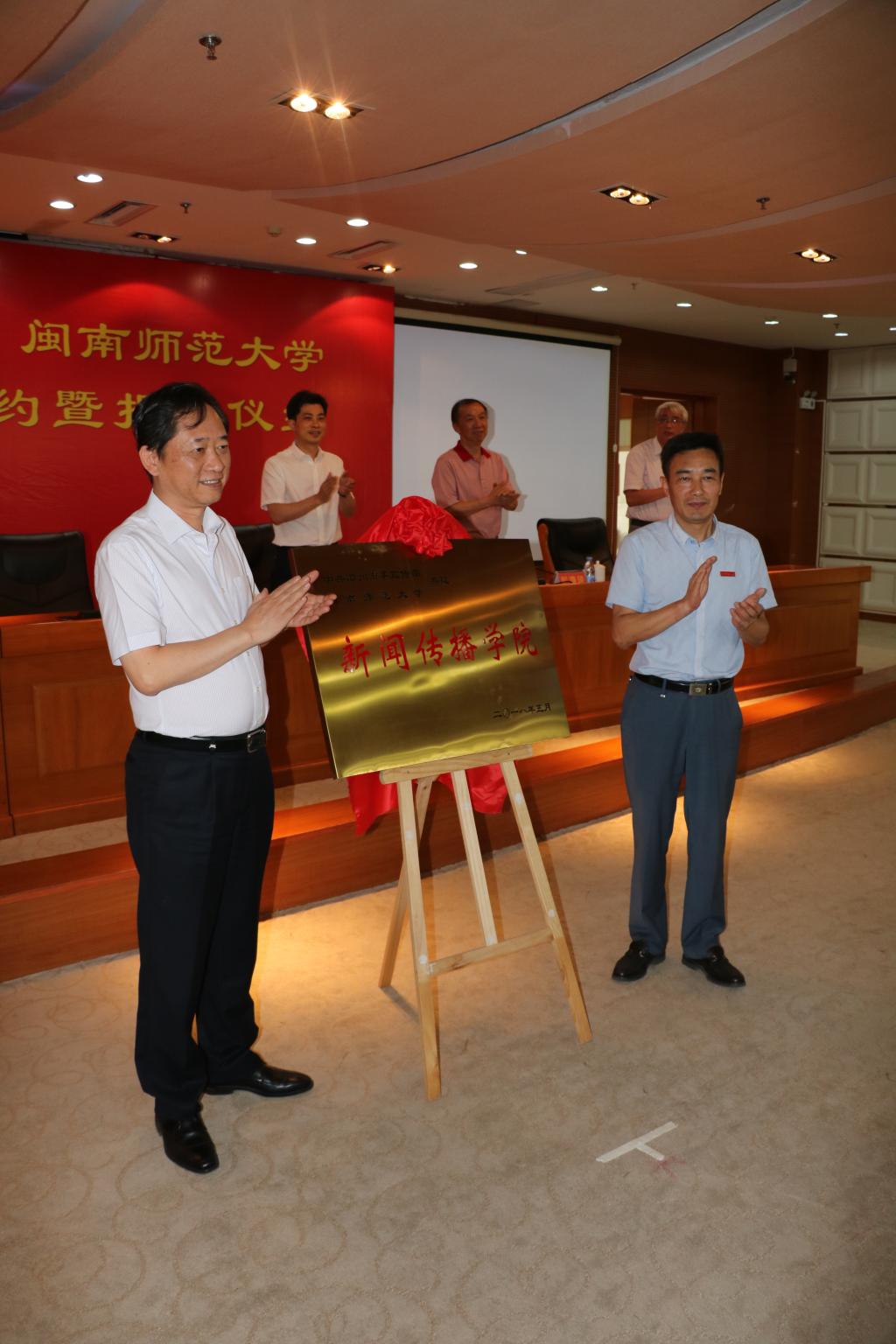漳州市委常委、宣傳部長劉偉澤與校黨委書記吳彬鏹共同為新聞傳播學(xué)院揭牌