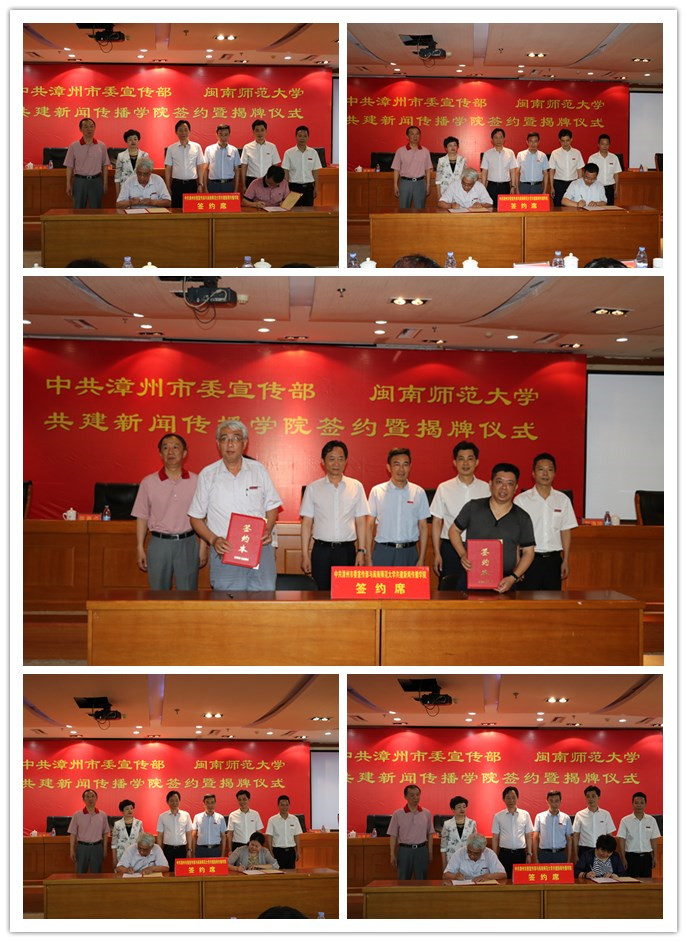鐘發(fā)亮代表閩南師范大學(xué),陳惠貞代表漳州市委宣傳部簽訂共建新聞傳播學(xué)院協(xié)議。此次共建工作是根據(jù)中宣部、教育部關(guān)于推進(jìn)地方黨委宣傳部門與高等學(xué)校共建新聞學(xué)院的意見,繼省委宣傳部開展部校共建工作以來,全省第一個(gè)設(shè)區(qū)市黨委宣傳部與高校共建新聞傳播學(xué)院。為推進(jìn)共建工作有效開展,專門成立了部校共建新聞傳播學(xué)院領(lǐng)導(dǎo)小組,并由市委宣傳部、市教育局等市直有關(guān)單位,我校有關(guān)部門、新聞傳播學(xué)院負(fù)責(zé)同志以及駐漳媒體、市直媒體共同組建了新聞傳播學(xué)院院務(wù)委員會(huì),由漳州市委宣傳部一位副部長擔(dān)任院務(wù)委員會(huì)主任。今后雙方將在共建精品課程、骨干隊(duì)伍、實(shí)踐基地、研究智庫、優(yōu)秀人才培養(yǎng)基地等方面開展合作,努力把新聞傳播學(xué)院建設(shè)成為特色鮮明、在省內(nèi)有較大影響的現(xiàn)代化新聞傳播學(xué)院。