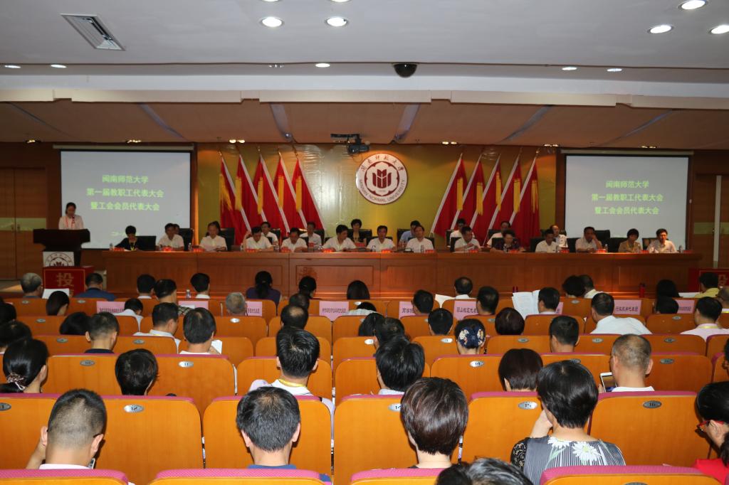 6月9日,我校在逸夫圖書館五樓報告廳召開閩南師范大學第一屆教職工代表大會暨工會會員代表大會,福建省總工會教科文衛體工會工委領導、全體校領導、原學校黨政老領導、離退休教師代表等出席會議,全校228名正式代表,31名特邀代表及列席代表參加會議。會議由校黨委副書記鐘發亮主持。