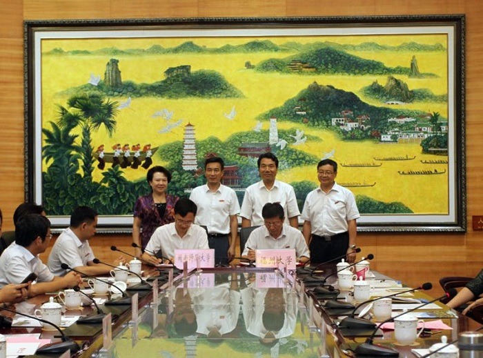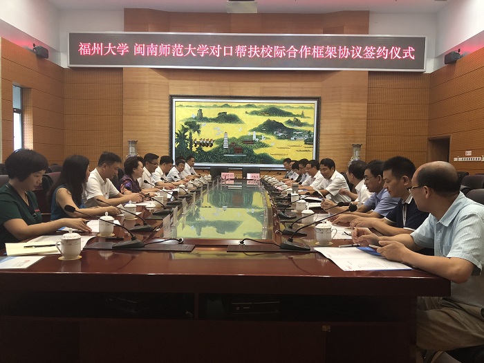 付賢智和李順興分別代表雙方簽署了《福州大學 閩南師范大學對口幫扶校際合作框架協議》。根據協議,兩校本著“統一組織、互相支持、著眼長遠、共同發展”的原則,在學科專業建設、師資隊伍建設、人才隊伍培養、科研項目合作和社會服務等方面開展合作,加強兩校高層聯系,定期互訪,并成立兩校協作領導小組,負責制定、實施和落實具體合作項目和實施方案。