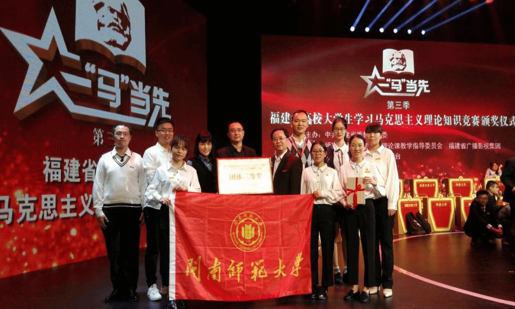 11月26日下午,由中共福建省委教工委主辦的第三季省高校大學生學習馬克思主義理論“一‘馬’當先”知識競賽總決賽在福建省廣播影視集團落下帷幕。我校研究生組以出色的成績獲團體二等獎,馬克思主義學院劉映芳同學憑扎實的理論功底和出色的現場發揮獲個人二等獎。