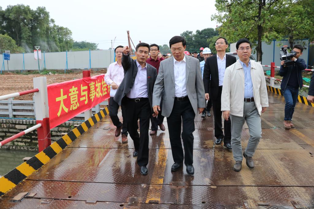 察看芝山南路跨江大橋在建工程
