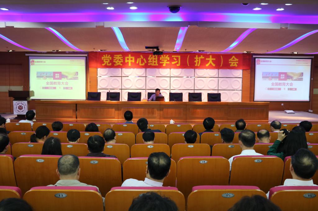 為深入學(xué)習(xí)貫徹全國教育大會(huì)精神和新修訂的《中國共產(chǎn)黨紀(jì)律處分條例》,12月20日下午,校黨委在逸夫圖書館五樓報(bào)告廳召開理論學(xué)習(xí)中心組(擴(kuò)大)會(huì)議。全體在家校領(lǐng)導(dǎo),全校副科級(jí)以上干部、黨支部書記,各民主黨派、無黨派人士及統(tǒng)戰(zhàn)團(tuán)體負(fù)責(zé)人,各級(jí)人大代表、政協(xié)委員、“四有”青年教師卓越班學(xué)員等共計(jì)400余人參加會(huì)議。會(huì)議由校黨委宣傳部部長(zhǎng)徐志懷主持。