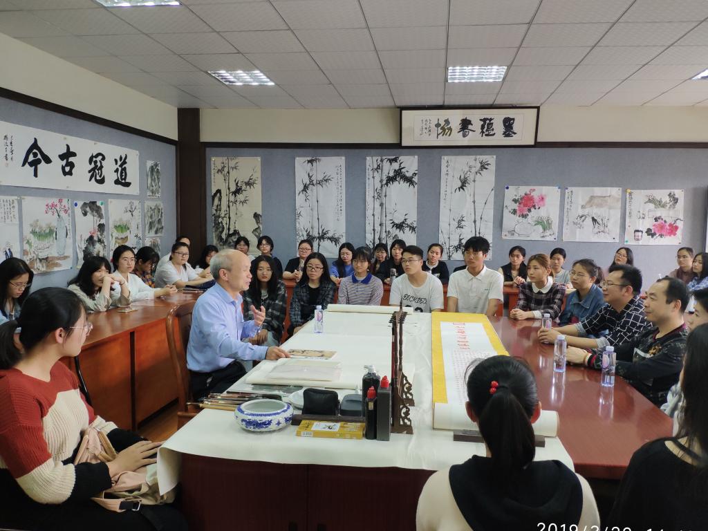 3月29日下午,中國書法家協會會員、北京市昌平區書法家協會主席、北京市書法家協會理事楊汶千先生應邀來我校講學,為文學院師生作題為《漫談儒釋道與書畫的關系》的講座。校黨委常委、副校長何紹福,文學院書畫研習班全體學生聆聽了講座。講座由文學院沈金耀教授主持。