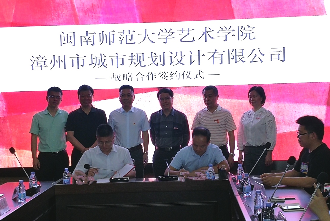 我校藝術學院美術與設計系主任朱三益與漳州市城投設計咨詢集團規劃設計院院長鄭榮泉代表雙方簽訂《閩南師范大學與漳州市城市規劃設計有限公司戰略合作框架協議》。根據協議,雙方將在項目編制、課題申報等方面展開合作,并將研究成果作為雙方共享的知識產權;我校相關專業教師可參與漳州市城市規劃設計有限公司項目論證,漳州市城市規劃設計有限公司將派專人對我校師生的項目進行指導,并提供師資方面的支持。