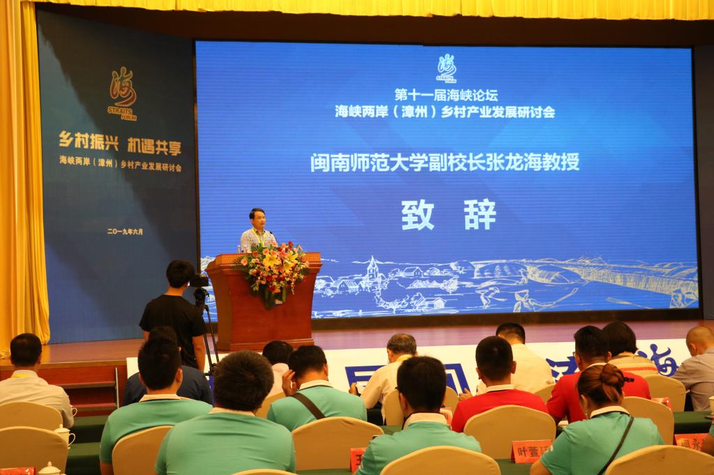 張龍海在會上致辭。張龍海指出,海峽兩岸(漳州)鄉村產業發展研討會的召開,將有助于深刻理解、深入貫徹實施十九大提出的鄉村振興戰略,在深化兩岸農業融合發展上達成具有建設性的共識。閩南師范大學將依托閩南文化研究院、兩岸一家親研究院和鄉村振興戰略研究院,繼續發揮自身特色與優勢,為深化兩岸融合發展,為漳州乃至福建、全國鄉村振興貢獻智慧與力量。