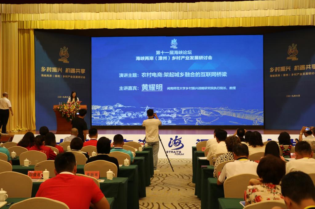 6月18日上午,第十一屆海峽論壇?海峽兩岸(漳州)鄉村產業發展研討會在漳州召開。漳州市政府副市長吳衛紅,閩南師范大學副校長張龍海,國臺辦海峽兩岸關系研究中心經濟室主任劉小軍,中國國民黨青年部主任蕭敬嚴,臺灣中華鄉村發展學會理事長、中興大學應用經濟學系教授黃炳文,以及臺灣各地青工總會代表,漳臺創業青年代表、臺中市的村里長代表、漳州市基層鄉村干部代表等200多人參加活動。研討會由閩南師范大學商學院院長張惠萍主持。