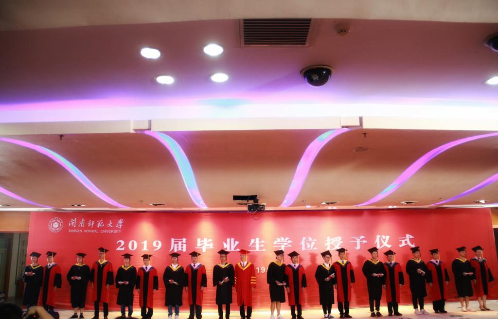 隨后,2019屆畢業生學位授予儀式在逸夫圖書館五樓舉行。全體校領導和各學院院長、副院長為所有獲得博士學位、碩士學位、學士學位的畢業生正冠拔穗,頒發學位證書,并和每一位同學合影留念。