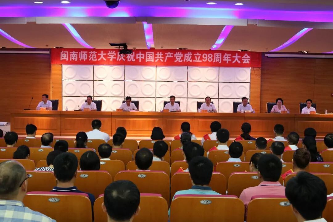 校黨委書記吳彬鏹在會上講話。吳彬鏹指出,今年是我校深入貫徹落實全國組織工作會議、全國教育大會精神的重要一年,同時也是全面落實閩南師范大學第一次黨代會精神、奮力沖刺2020年博士學位授予單位的攻堅之年,學校隆重舉行慶祝中國共產黨成立98周年暨“七一”表彰大會,旨在進一步激勵全校廣大黨員在緬懷歷史中不忘初心、牢記使命,在展望未來中對標爭先、砥礪前進,以更堅定的信仰、更自覺的行動、更務實的舉措,積極投身新時代學校辦學發展各項事業。吳彬鏹強調,全校各級黨組織和黨員同志要不忘初心,永葆共產黨人堅定信仰,要弘揚思想建黨光榮傳統,自覺用習近平新時代中國特色社會主義思想武裝頭腦;要突出政治建設重要地位,時刻保持對黨絕對忠誠;要堅守學校辦學發展初心,堅定社會主義辦學發展道路。