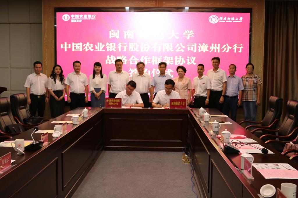 7月5日,我校與中國(guó)農(nóng)業(yè)銀行漳州分行戰(zhàn)略合作框架協(xié)議簽約儀式在科技信息樓舉行。校黨委書(shū)記吳彬鏹、中國(guó)農(nóng)業(yè)銀行福建省分行副行長(zhǎng)陳展紅出席簽約儀式并致辭,校長(zhǎng)李順興與中國(guó)農(nóng)業(yè)銀行漳州分行行長(zhǎng)吳輝代表雙方簽訂了戰(zhàn)略合作協(xié)議。副校長(zhǎng)蔣一婷主持簽約儀式。中國(guó)農(nóng)業(yè)銀行漳州分行及我校相關(guān)職能部門(mén)負(fù)責(zé)人參加簽約儀式。