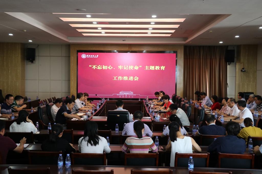 10月18日下午,我校在科技樓召開“不忘初心、牢記使命”主題教育工作推進會。全體在家校領導,各二級黨組織負責人,機關教輔單位黨支部書記,黨委組織員,主題教育領導小組辦公室相關人員參加會議。會議由校黨委副書記鐘發亮主持。