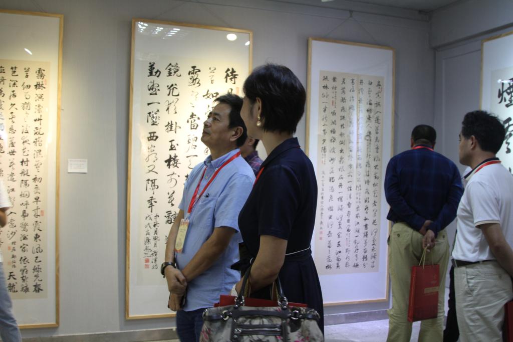 吳彬鏹宣布閩南師范大學“禮贊新中國 奮進新閩師”校友捐贈書畫作品展開幕。隨后,參加開幕式的領導、來賓和各地校友代表參觀了書畫作品展。