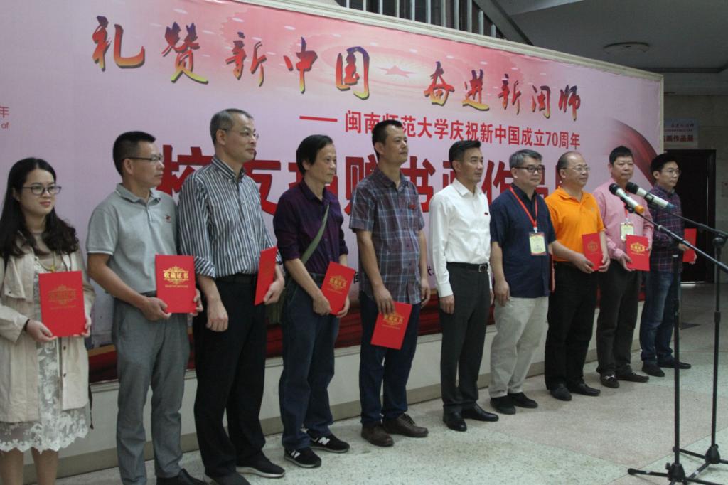 吳彬鏹為捐贈書畫的校友代表頒發收藏證書并致辭。吳彬鏹指出,書畫藝術是我國傳統文化的璀璨瑰寶,校友捐贈的一幅幅優秀作品凝聚了校友對家國對母校的深厚情懷。舉辦校友捐贈書畫作品展既是獻禮新中國成立70周年的一項重要文化活動,也是增進母校和校友之間、廣大校友之間情誼的橋梁,更是展現閩南師范大學廣大師生校友深厚藝術功底和深沉家國情懷的一扇窗口。