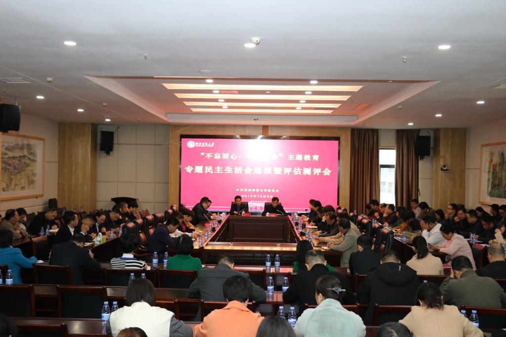 12月5日上午,我校在科技樓召開校黨委領導班子“不忘初心、牢記使命”專題民主生活會情況通報暨主題教育評估測評會。省委第三巡回指導組副組長劉立成及組員陳敬祥、謝鴻懷蒞會指導。全體在家校領導、中層以上干部、一代表兩委員、民主黨派負責人、部分師生代表及主題辦工作人員100余人參加會議。會議由校黨委副書記鐘發(fā)亮主持。