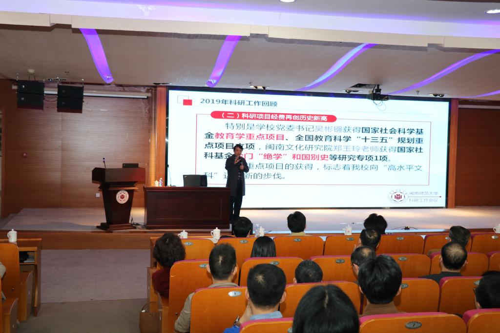 會(huì)上,校黨委常委、副校長(zhǎng)張龍海首先作了題為《縱向提質(zhì)、橫向增量,全面提升我校科研水平》的工作報(bào)告。報(bào)告總結(jié)了我校2019年科研工作情況及取得的成績(jī),分析了學(xué)校科研工作存在的問(wèn)題,提出了2020年科研工作的思路和努力方向。張龍海指出,2020年我校科研工作要緊密?chē)@第一次黨代會(huì)提出的“建設(shè)特色鮮明、多學(xué)科融合發(fā)展的高水平師范大學(xué)”的奮斗目標(biāo),做到重視縱向課題申報(bào)、培育,提高科研質(zhì)量;拓展橫向課題范圍,增加經(jīng)費(fèi)總量;深化體制機(jī)制改革,營(yíng)造良好的學(xué)術(shù)生態(tài),全面提升我校科研水平。