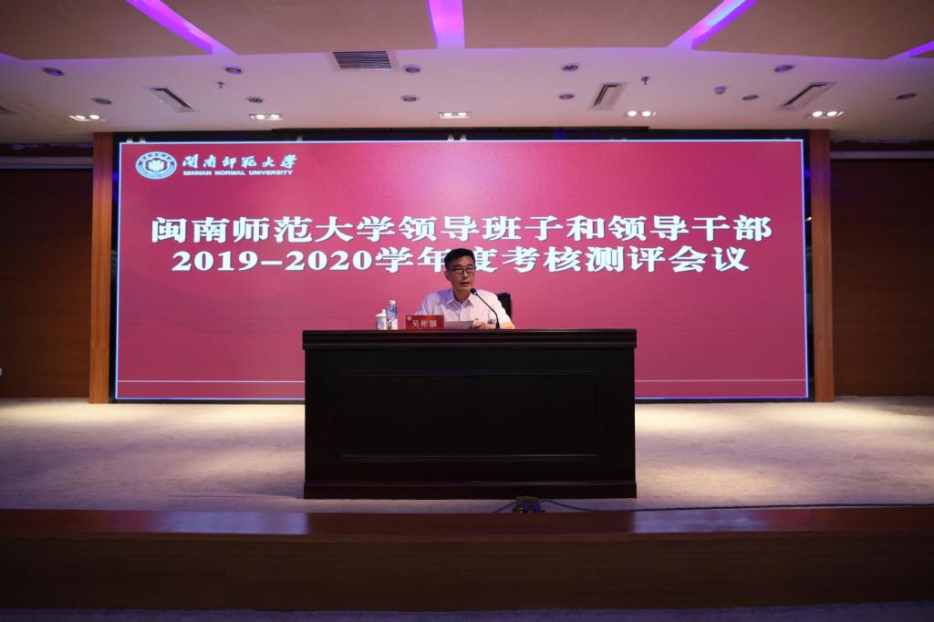 按照省委組織部關于做好高校領導班子和領導干部年度考核工作的統一部署和要求,6月28日上午,我校在逸夫圖書館五樓報告廳召開2019-2020學年度學校領導班子和領導干部考核測評會議。省委組織部干部六處處長、一級調研員李少群等考核組成員出席會議。學校領導班子成員、省管干部、全校中層干部、省級以上“兩代表一委員”、學校民主黨派主要負責人、學生代表等120余人參加會議。會議由校黨委書記吳彬鏹主持。
