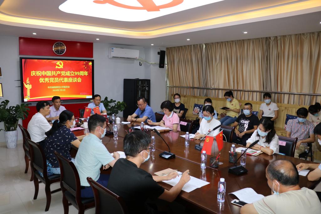 7月1日下午,我校慶祝中國共產黨成立99周年優秀黨員代表座談會在科技信息樓“黨員之家”召開。校黨委書記吳彬鏹,校黨委副書記、校長李順興,校黨委副書記鐘發亮、肖慶偉出席會議,全校20余名優秀黨員代表參加會議。會議由鐘發亮主持。