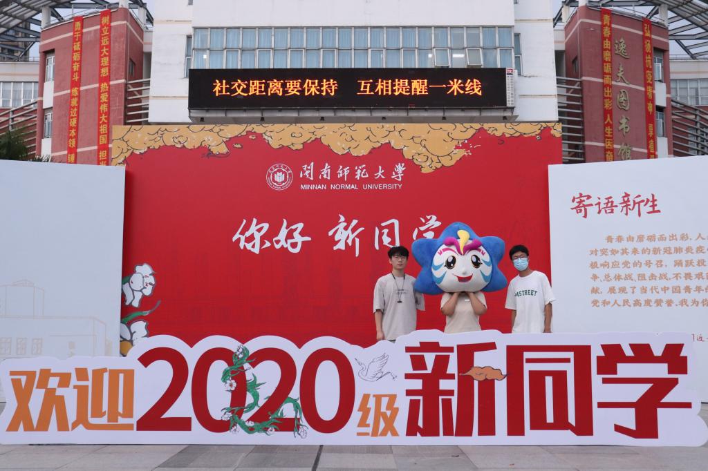 校園里,各類迎新標語和展板也讓校園充滿喜慶的氛圍。“乘風破浪的學妹 披荊斬棘的學弟 恭喜你C位出道”“閩南師大拍了拍你 新起點新征程一起加油奔跑吧”“盼星星 盼月亮 終于盼來2020級小可愛”等標語深受學生喜愛;“閩南師大歡迎你”“你好,新同學”“我和大學的第一張合影”等宣傳展板吸引眾多新生留影合照。
