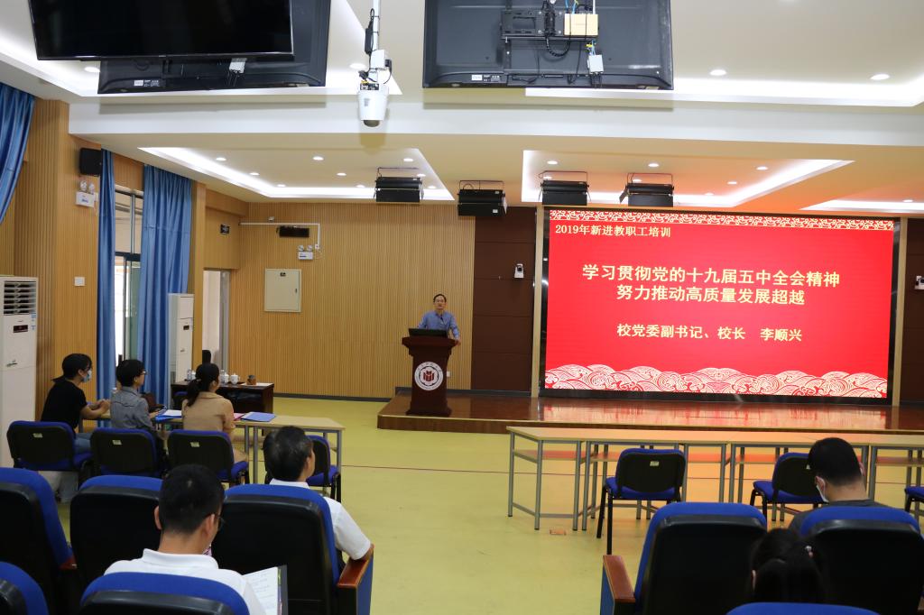 為進(jìn)一步促進(jìn)新進(jìn)教職工熟悉學(xué)校各項事業(yè)改革發(fā)展,11月19日下午,我校在礪志樓120舉行2019年新進(jìn)教職工培訓(xùn)班開班式。校黨委副書記、黨校校長肖慶偉出席開班式,宣傳部、教師工作部(人事處)、教務(wù)處等部門負(fù)責(zé)人及2019年新進(jìn)教職工100余人參加開班式,開班式由宣傳部部長、統(tǒng)戰(zhàn)部部長、黨校副校長徐志懷主持。