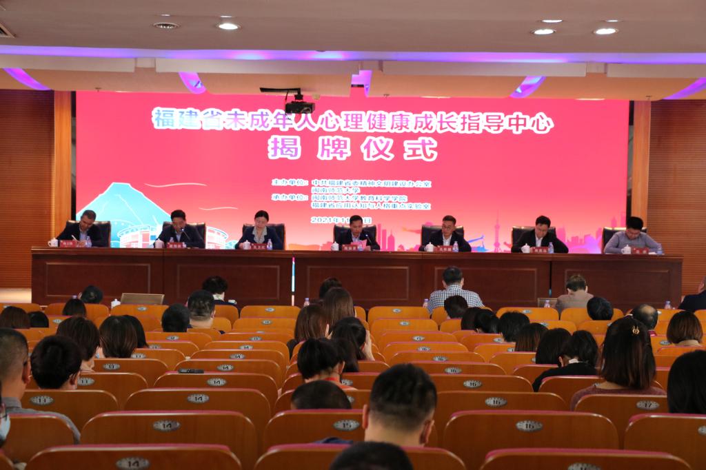 11月9日上午,福建省未成年人心理健康成長指導中心揭牌儀式在我校逸夫圖書館五樓報告廳舉行。