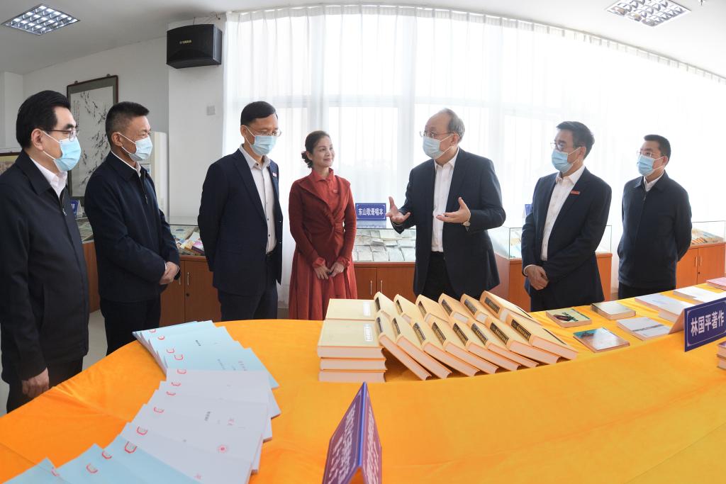漳州是臺灣同胞的主要祖籍地,我校在開展對臺研究、引進臺灣教師、聯合培養人才等方面有一定的特色優勢。尹力一行參觀了閩南文化辦學特色展、兩岸一家親研究院,詳細了解學校學科建設、推動兩岸教育交流合作等情況,希望學校發揮自身優勢,立足閩南特點,進一步深入開展閩南文化、閩臺族譜等研究交流和開放共享,加快文獻資料、研究成果數字化信息化網絡化步伐,讓更多臺胞參與進來,增加感性認識,增強根脈歸屬,增進文化認同,促進兩岸一家親上加親、融合發展。
