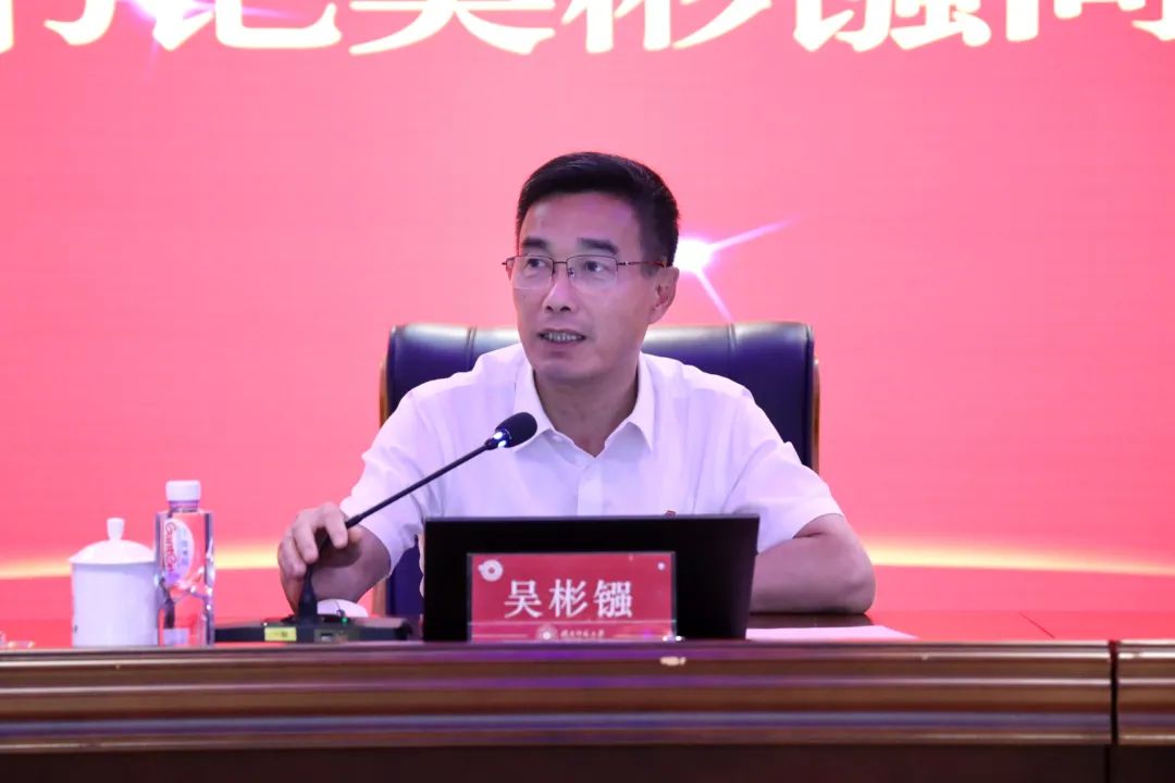 校黨委書記吳彬鏹在會上講話。吳彬鏹指出,推動黨建與業務工作深度融合,是貫徹落實全國全省高校黨建工作會議精神的具體舉措,也是提高我校基層黨建工作質量、推動各項工作提質增效的必然要求。他要求各級黨組織要在系統推進、找準方向、發揮特色、強化服務、建強隊伍中深化促進學校基層黨建工作“融合賦能、提質增效”。他強調,要以系統構建學校黨委、二級學院黨委、基層黨支部、黨員“四位一體”組織體系為抓手,著力構建上下聯動、各司其職、運行高效的基層黨建工作體系。要圍繞落實立德樹人根本任務,把黨的領導堅決落實到辦學治校、教書育人各項工作當中。要抓好黨建和業務的“融合”文章,努力鍛造特色鮮明、優勢突出、黨建與業務互融互促的標桿院系、樣板支部,以點帶面推動學校基層黨建工作水平整體提升。要把黨建工作融入學校日常管理服務中,不斷完善聯系服務師生的工作機制,讓黨建工作更有溫度、更有深度。