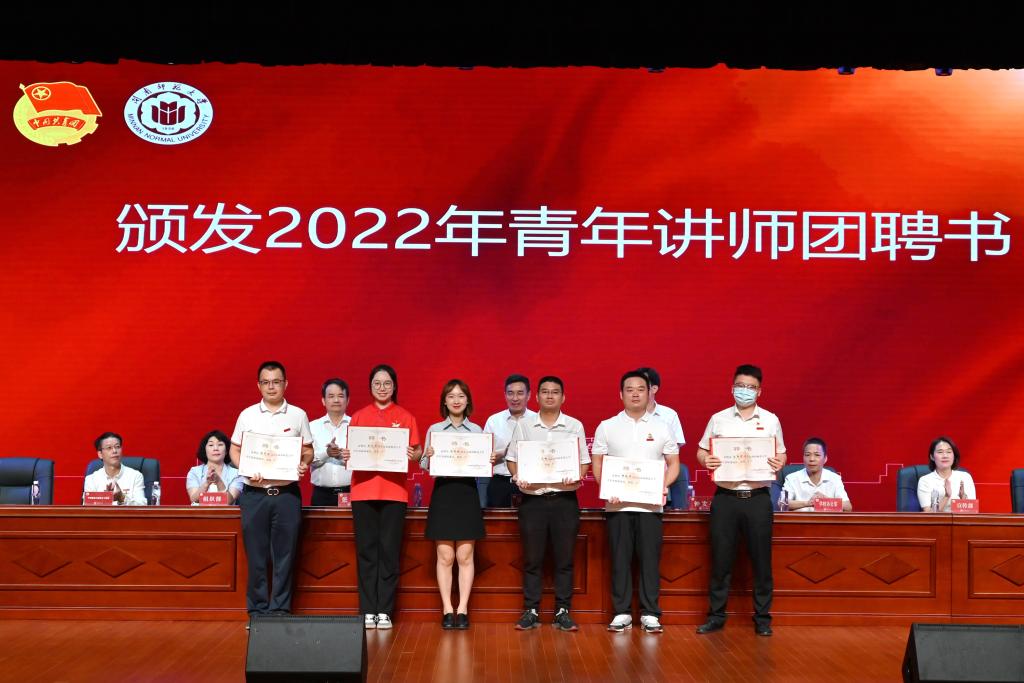 在青年講師團聘任儀式上,校領導為青年講師團代表頒發聘書。馬克思主義學院教師林玲鈺作為青年講師團代表發言,表示將發揮與學生年齡相近、互動較多的優勢,講政治、強專業、重創新,做一名可靠、可信、可愛的青年講師。