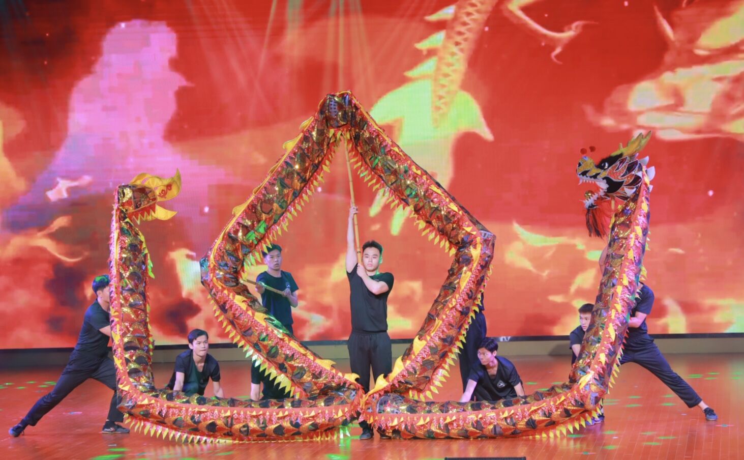 晚會以“學習二十大,永遠跟黨走,奮進新征程”為主題,由“崢嶸歲月?奮進新征程”“砥礪前行?建功新時代”“奮斗青春?揚帆新啟航”三個篇章組成。暖場節目《龍騰武韻》將舞龍表演與傳統武術巧妙結合,表演氣勢宏大、震撼人心,迅速點燃現場氛圍。舞蹈《長存》展現了一百年前的中國青年以滿腔熱忱傳承革命薪火、矢志報效祖國的動人故事;器樂合奏《采薇》以《詩經》為題材,古箏與琵琶演奏相互交融,婉轉悠揚;社團展演《錦“社”年華》將傳統與現代相糅合,生動展現了南音、漢服、戲曲等中華優秀文化的獨特魅力;街舞《向陽而生》用動感的節拍詮釋澎湃的活力,盡顯新時代青年堅韌不拔、蓬勃向上的青春風采;朗誦《跨越百年的承諾》回顧中國共產黨波瀾壯闊的百年征程,許下了“請黨放心、強國有我”的錚錚誓言;壓軸節目歌舞《領航》大氣磅礴,把對黨的崇敬之情表達得淋漓盡致,表達了全體閩南師大人永遠跟黨走、奮進新征程的赤誠與豪邁。值得一提的是,閩南師范大學附屬小學同學們表演的合唱《讀唐詩》和附屬幼兒園小朋友們帶來的音詩舞《我是中國娃》展現了祖國花朵傳承中華文化、爭做社會主義事業接班人的良好精神風貌;中國人民解放軍73131部隊“烽火”文藝輕騎隊舞蹈《東南戰狼》彰顯了新時代軍人保家衛國的初心本色,將晚會氣氛推向高潮。