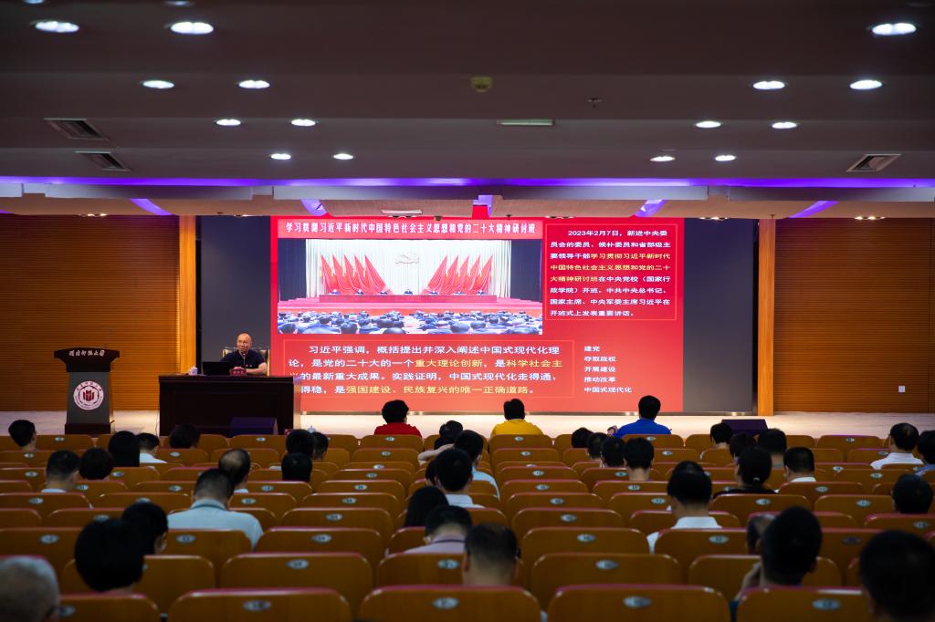 6月15日下午,我校在逸夫圖書館五樓報告廳舉辦學習貫徹習近平新時代中國特色社會主義思想主題教育讀書班專題輔導報告暨校黨委理論學習中心組(擴大)學習會,全體在家校領導、全校中層干部、科級干部參加。報告會由校黨委組織部副部長(主持)陳慧燕主持。