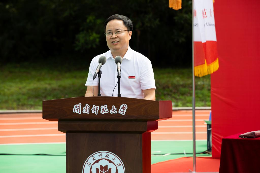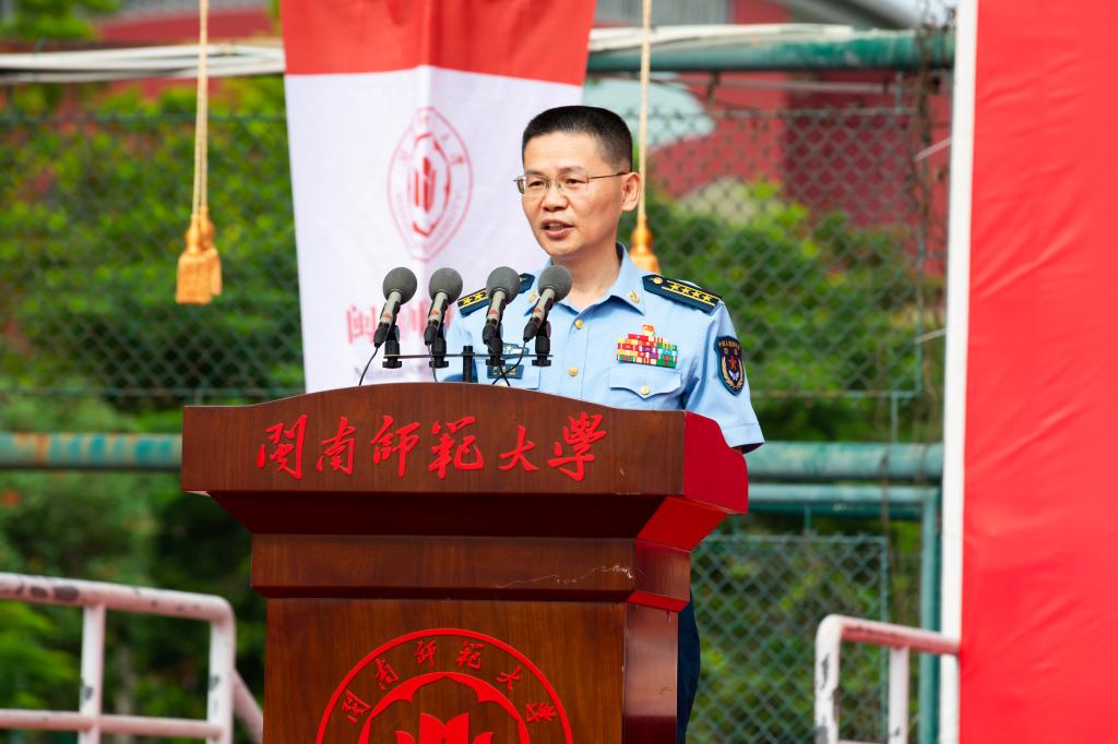 吳彬鏹作題為《向下生根向陽而行》的講話。他指出,今年恰逢學校建校65周年、本科辦學60周年、研究生辦學20周年、更名大學10周年。一代代閩南師大人響應國家號召、順應時代潮流,發展成了一所具有優秀辦學傳統、特殊戰略價值的高校。他希望同學們深刻領悟“博學、明理、礪志、篤行”的校訓內涵,把家國情懷刻在骨里,熱愛我們的祖國,堅持自己的夢想,不忘來路和初心,澆筑理想信念的精神支柱。把自信自強記在心里,做好規劃,保持努力,包容不同,涵養品格和毅力,拓寬通往未來的陽光大道。把知識能力學在手里,扎實專業基礎形成積淀,突破慣性思維推動創新,適應時代需求鍛造價值,打造實現跨越的強大引擎。他強調,在軍訓期間要一切聽從指揮,挺起腰桿,鼓足底氣,從嚴要求自己,克服嬌氣脾氣,磨煉身心意志,增強集體榮譽感,堅持必勝的信念,展現新閩南師大人一往無前的精氣神,一筆一劃勾勒青春最美的風景,譜寫出人生最華麗的篇章。