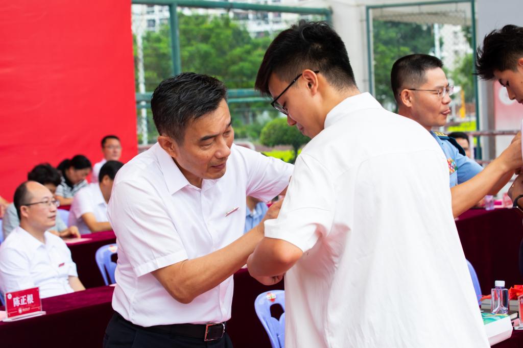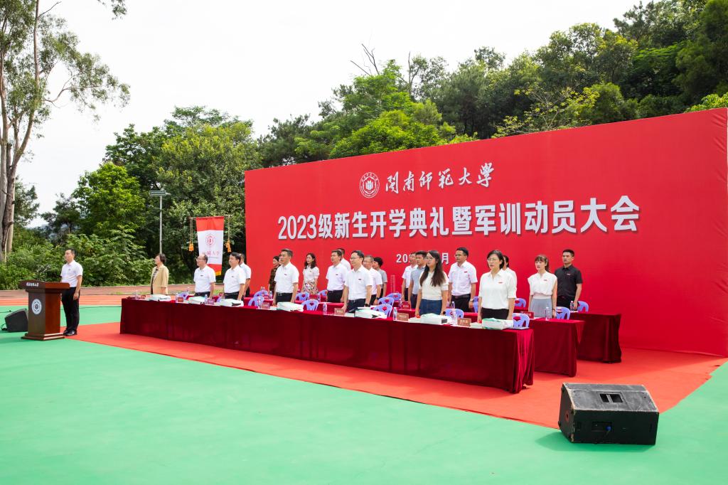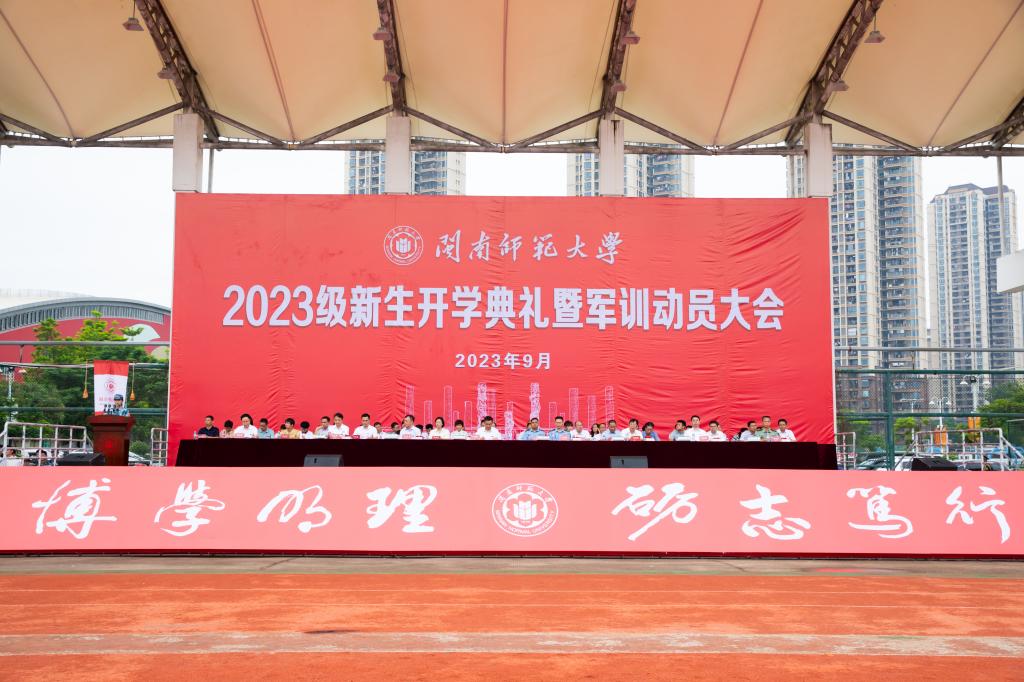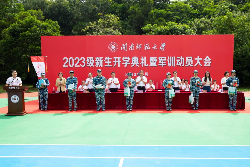 9月8日上午,我校2023級新生開學典禮暨軍訓動員大會分別于北江濱校區和圓山校區舉行。空軍某部首長嚴忠鏘、陳正根,漳州軍分區戰備建設處上校處長林建輝,校黨委書記吳彬鏹,校黨委副書記肖慶偉,副校長何紹福、林致遠、張龍海,紀委書記戴福康等在家校領導出席。典禮分別由副校長林致遠和學生工作處處長、校人民武裝部部長蔡斌主持。