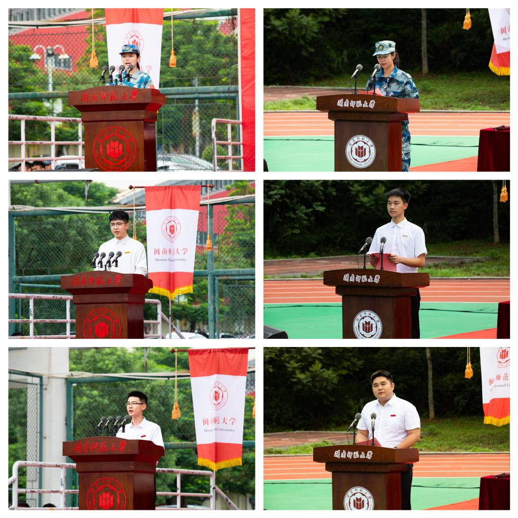 典禮在莊嚴的國歌聲中拉開帷幕。文學院陳柳蓉、歷史地理學院林晨星作為新生代表發言。數學與統計學院李偉諾、商學院林涵煜作為在校生代表發言。計算機學院羅智鵬副教授、馬克思主義學院何銘灝副教授作為教師代表發言。