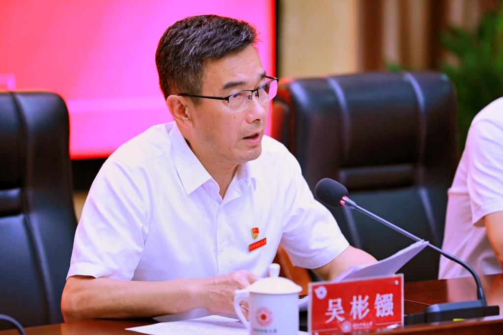 吳彬鏹指出,主題教育開展以來,我校認真貫徹落實黨中央決策部署和省委工作要求,牢牢把握“學思想、強黨性、重實踐、建新功”的總要求,緊緊圍繞立德樹人根本任務,把理論學習、調查研究、推動發展、檢視整改有機融合、一體推進,取得了扎實成效。一是組織領導聚焦“強”,成立主題教育領導小組,堅持高站位謀劃、高標準推進,確保主題教育有力有序開展。二是理論學習聚焦“深”,通過領導干部帶頭學、宣講培訓深入學、創新載體沉浸學、挖掘特色資源學、青年黨員引領學,有力推動新思想入腦入心。三是調查研究聚焦“實”,圍繞事關學校改革發展和民生福祉的中心工作,堅持扭住關鍵、科學選題、同向發力、精準破題,真正做到摸實情、謀良策、解難題。四是推動發展聚焦“效”,在黨建思政工作、人才培養、對外交流與合作辦學、校地合作、特色辦學、服務師生等方面取得新成效、實現新突破。五是檢視整改聚焦“準”,堅持對標對表找準問題,分類施策真抓實改,建章立制促進長效,切實將主題教育整改成效轉化為制度性成果。六是宣傳引導聚焦“濃”,通過校內校外聯動,網上網下同頻,有聲有色宣傳學校主題教育經驗做法,營造了濃厚氛圍。廣大黨員干部學習貫徹黨的創新理論更加堅定,干事創業的精氣神更加飽滿,學校制度機制建設更加完善,師生急難愁盼問題得到有效解決,學校“雙一流”建設更加有力,廣大師生切實感受到了主題教育帶來的新變化。