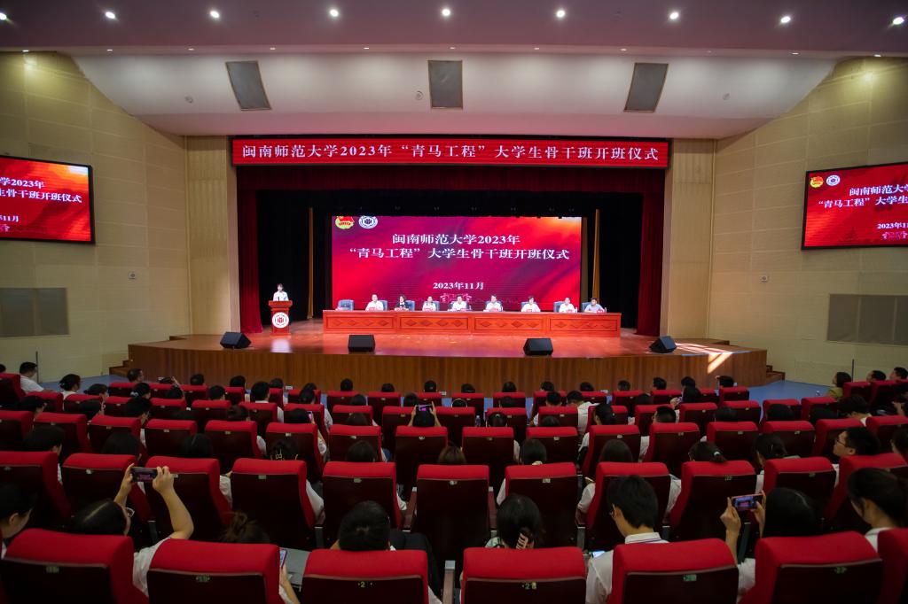 11月2日下午,我校2023年“青馬工程”大學生骨干班開班儀式在閩南文化藝術(shù)中心多功能廳舉行。校黨委常委、副校長林致遠、張龍海出席,學校相關(guān)職能部門負責人、各二級學院黨委副書記、全體專職團干部、2022年校級“青馬工程”大學生骨干班結(jié)業(yè)學員代表和2023年校院兩級“青馬工程”大學生骨干班學員代表共計200余人參加。儀式由校團委副書記童娟主持。