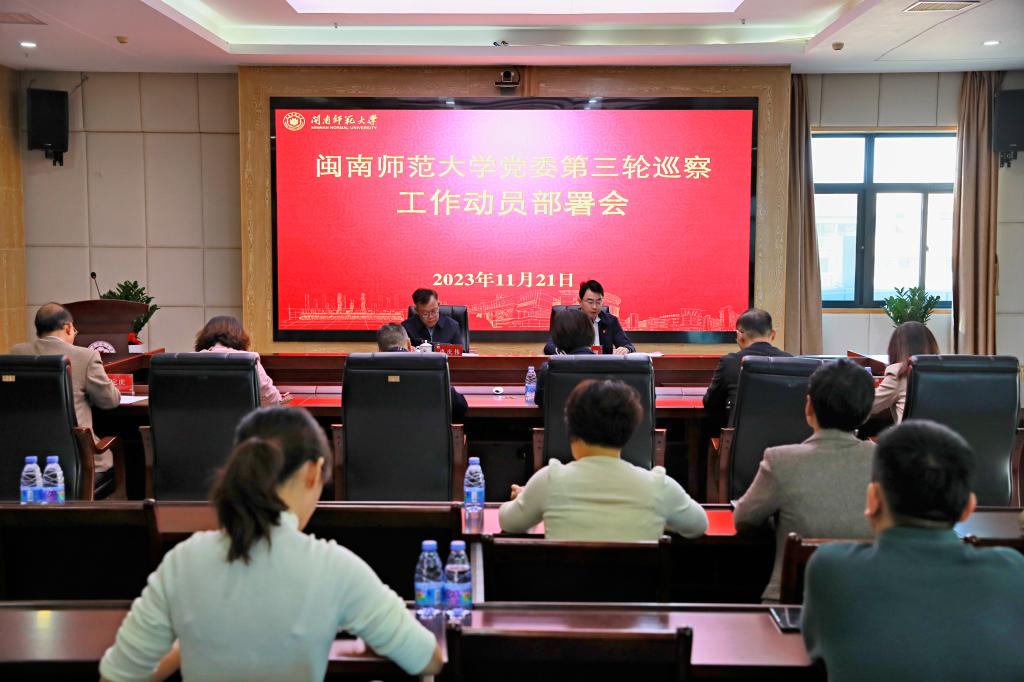 11月21日,校黨委召開第三輪巡察工作動員部署會。校黨委副書記肖慶偉出席并作動員講話,校黨委常委、紀委書記、巡察工作領導小組副組長戴??祩鬟_學習2023年全國、全省巡視巡察工作會議精神并進行巡察工作部署,校黨委組織部副部長(主持工作)陳慧燕宣布第三輪巡察工作組長授權任職和任務分工的決定。校巡察工作領導小組成員、二級學院黨委書記及相關單位負責人、巡察組全體成員、本輪被巡察單位黨政班子成員參加會議。