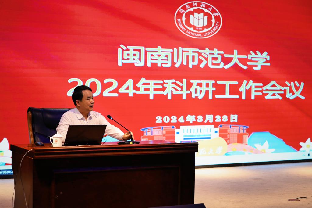 3月28日下午,我校在逸夫圖書館五樓報告廳召開2024年科研工作會議。全體在家校領導出席會議。會議由科研處處長林福財主持。