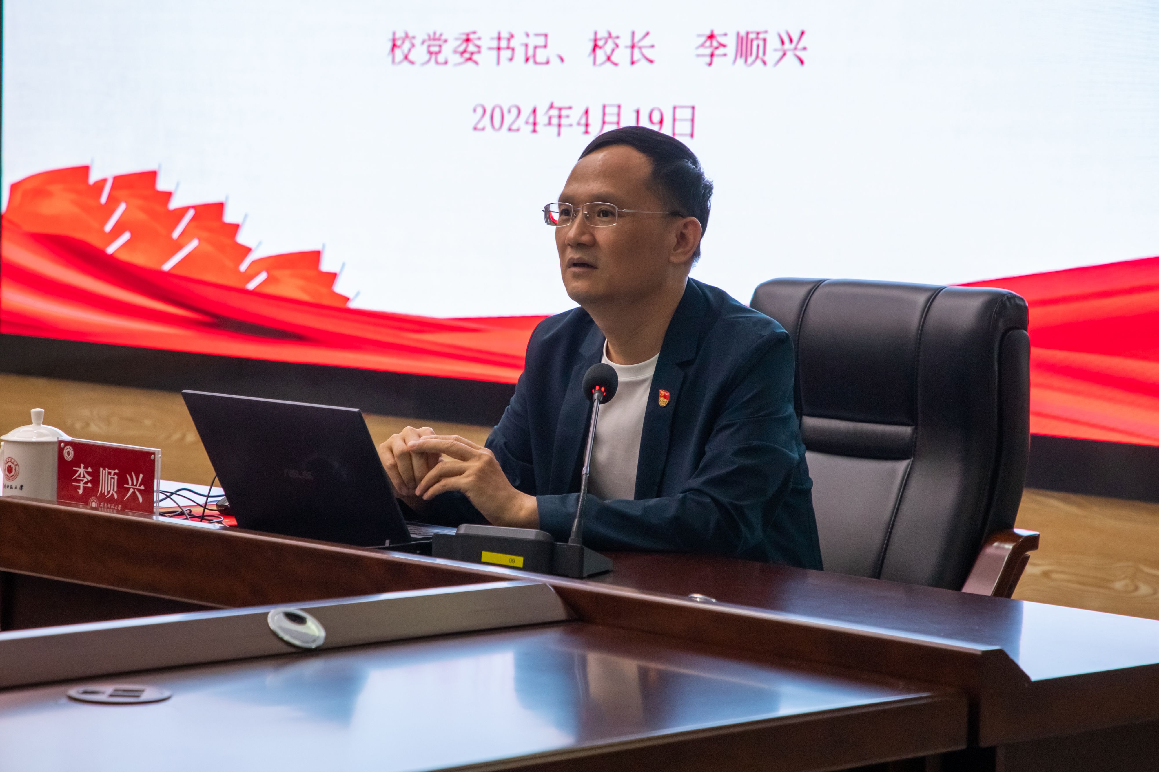 4月19日,校黨委書記、校長李順興在科技信息樓1607會議室為研究生作題為《以“大國工匠”精神推動新質生產力加快發展》的形勢政策報告。