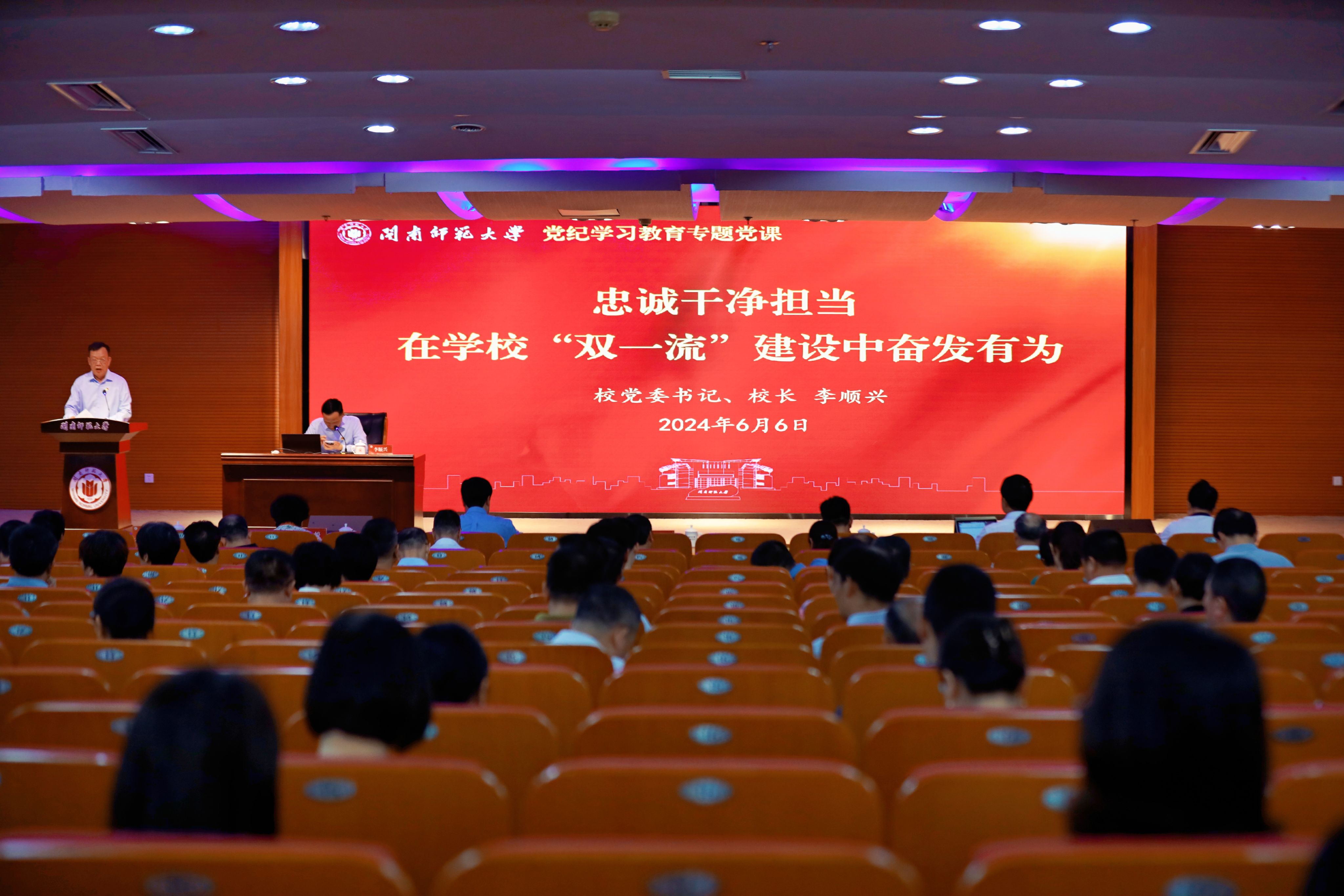 為推進(jìn)黨紀(jì)學(xué)習(xí)教育走深走實(shí),6月6日,校黨委書(shū)記、校長(zhǎng)李順興在逸夫圖書(shū)館五樓報(bào)告廳講授題為《忠誠(chéng)干凈擔(dān)當(dāng),在學(xué)校“雙一流”建設(shè)中奮發(fā)有為》的專(zhuān)題黨課。校黨委副書(shū)記肖慶偉主持。