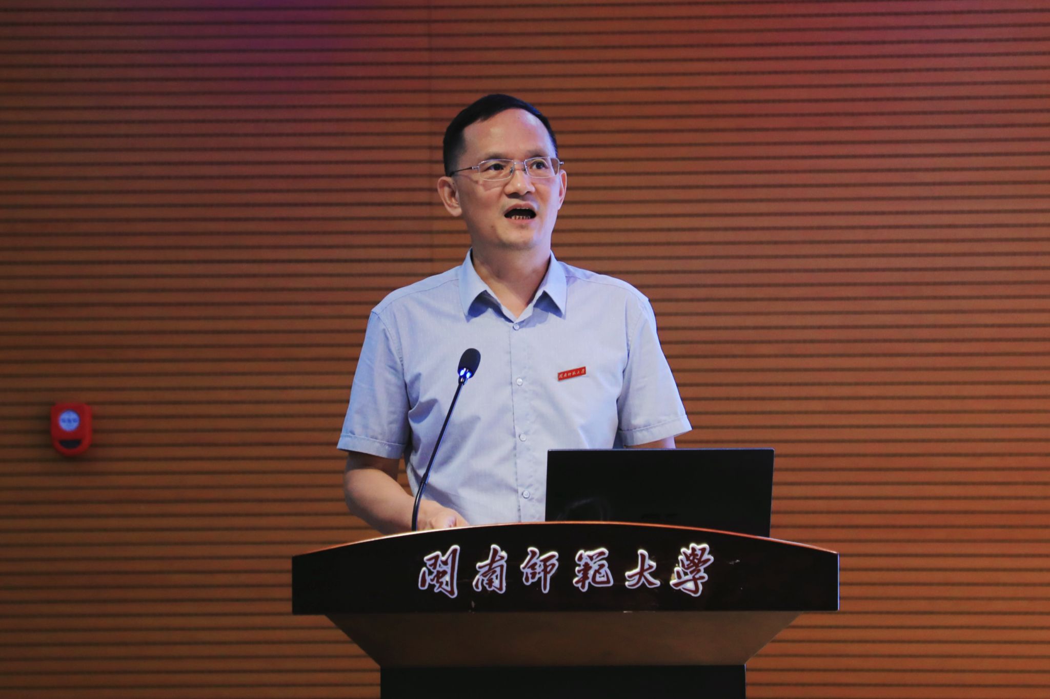 ▲南寧師范大學校長、博士生導師李傳起教授作題為《大學的功能演變和評價改革》的專題報告