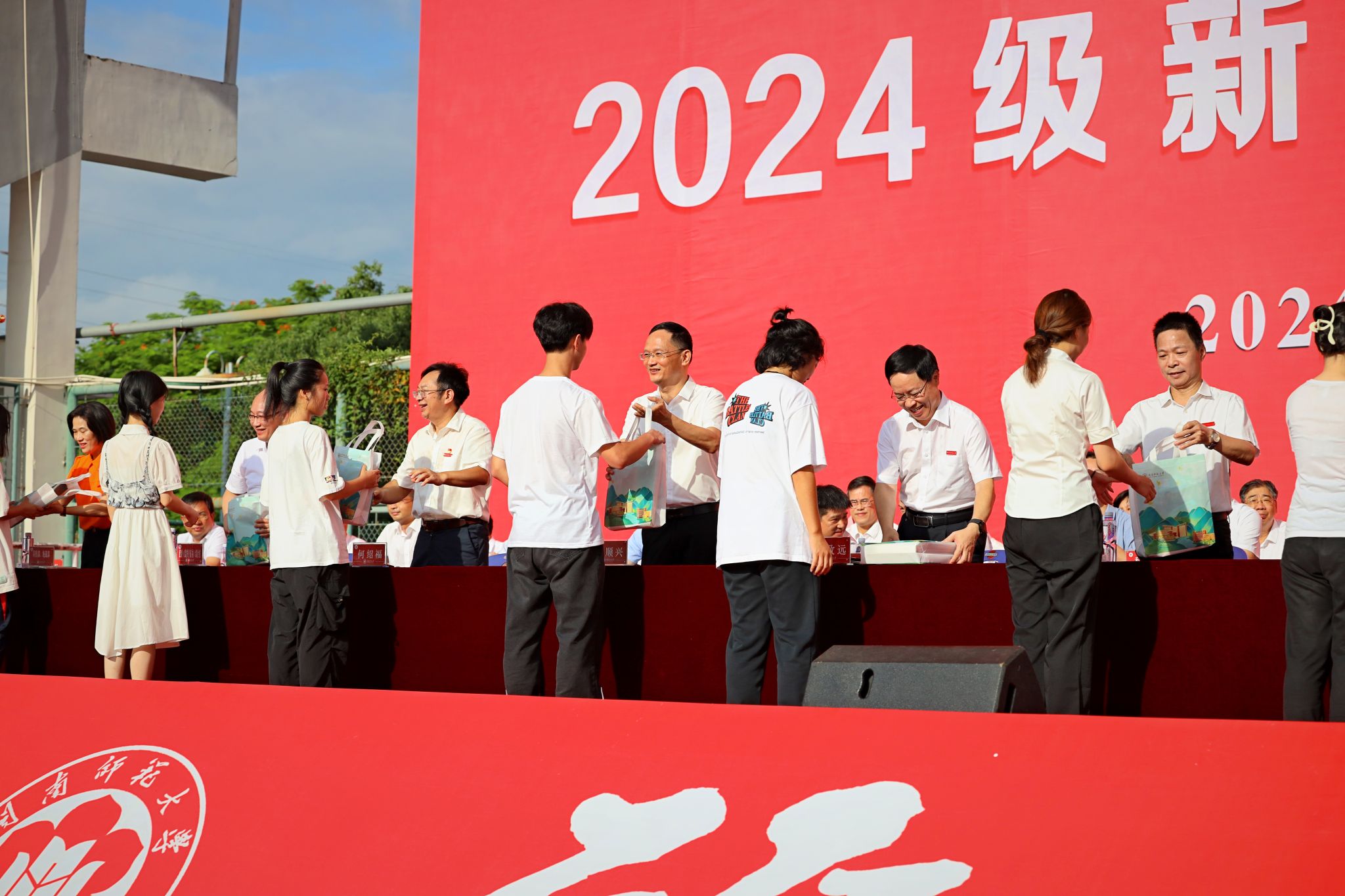 典禮上舉行了學(xué)?;照屡宕鲀x式,老師們還為恰逢在典禮當(dāng)天和新生報(bào)到期間過生日的新生代表送上生日禮包,祝愿2024級(jí)新同學(xué)勇敢追夢(mèng)、書寫未來。