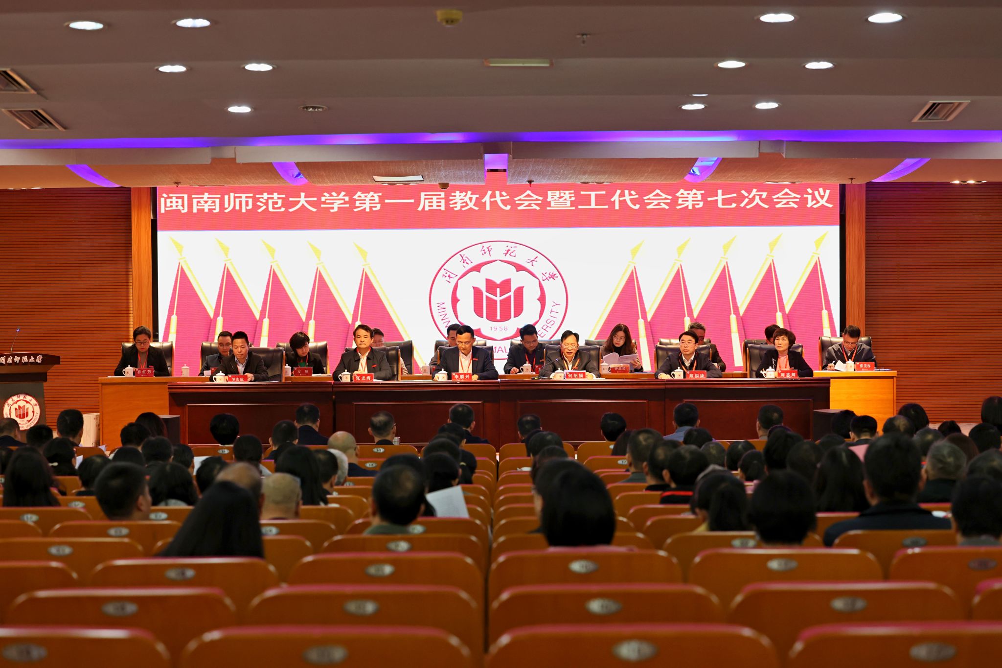 12月19日,閩南師范大學第一屆教代會暨工代會第七次會議在逸夫圖書館五樓報告廳召開。全體在家校領導出席會議,全校171名正式代表、13名列席代表參加。會議由校黨委常委、副校長何紹福主持。