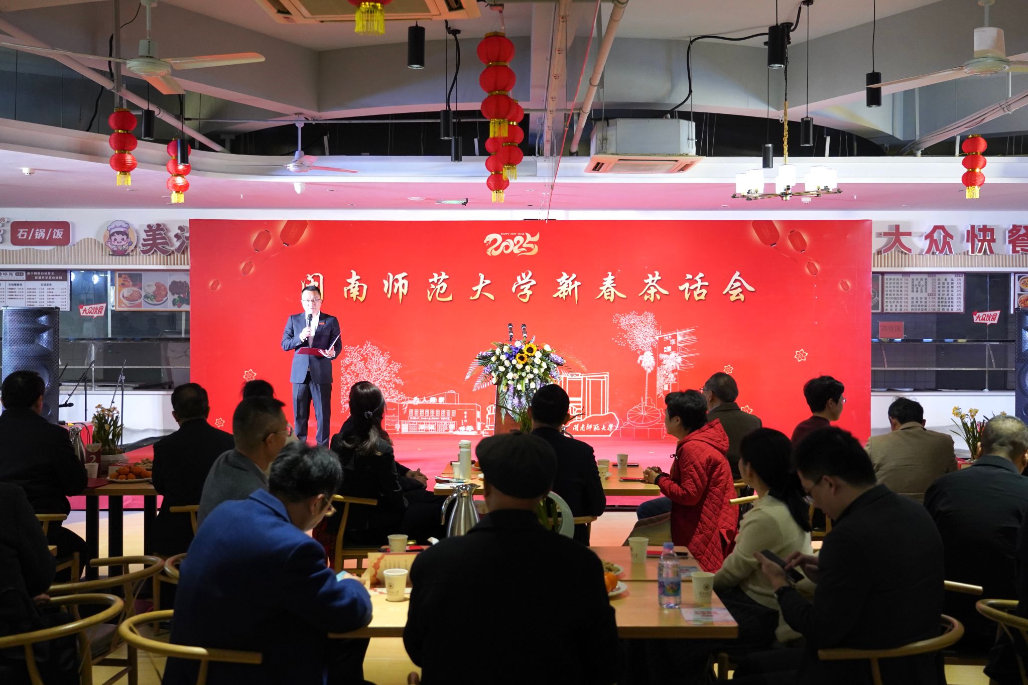表演結束后,校領導集體上臺,為大家送上了新春的美好祝福。他們希望,在新的一年里,全體師生能夠繼續奮斗,共同繪就閩南師范大學的絢麗新篇。
