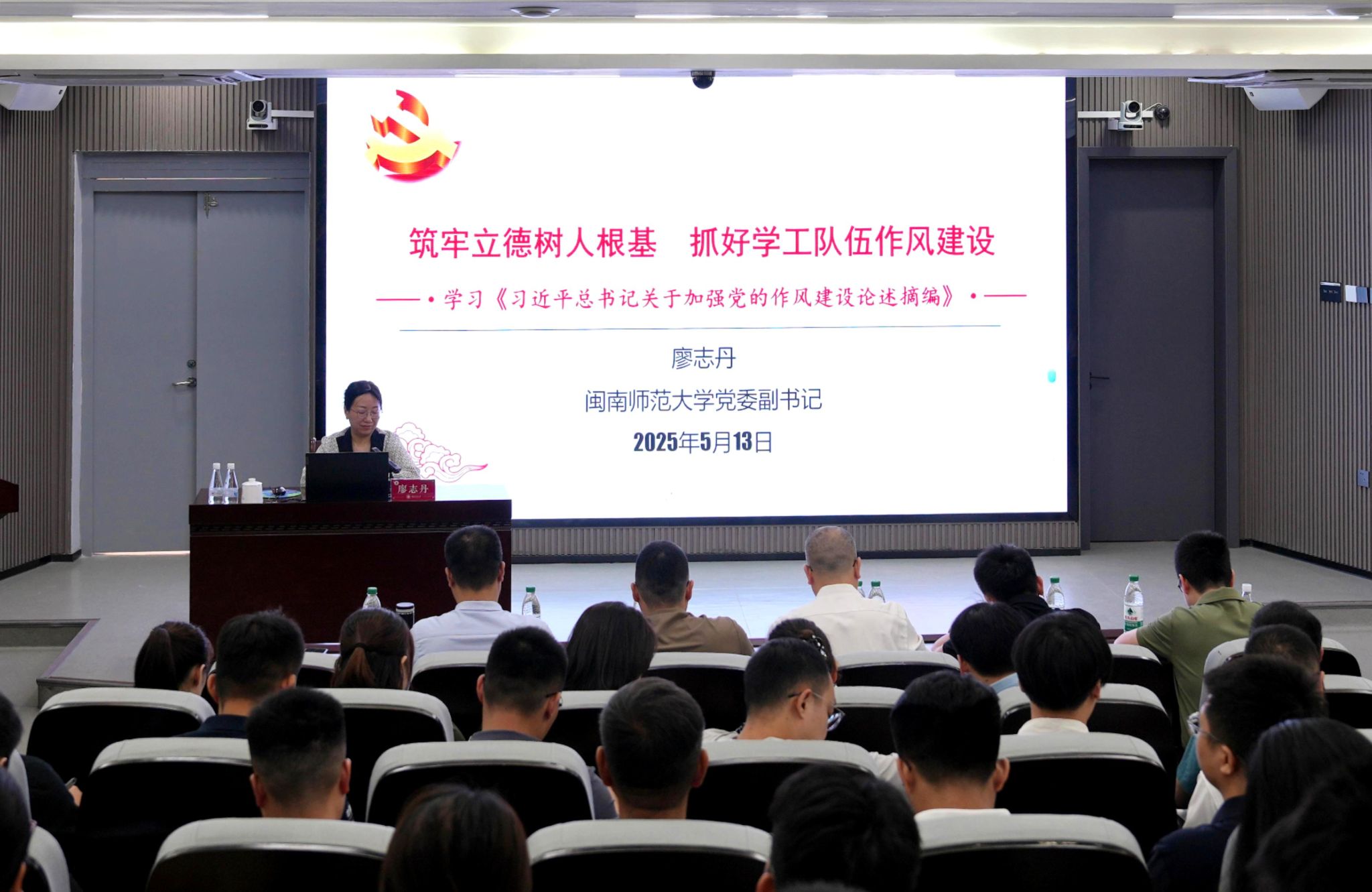 5月13日,校黨委副書記廖志丹以《筑牢立德樹人根基 抓好學工隊伍作風建設》為題,在達理樓南206會議室為全體學工干部講授深入貫徹中央八項規定精神學習教育專題黨課。